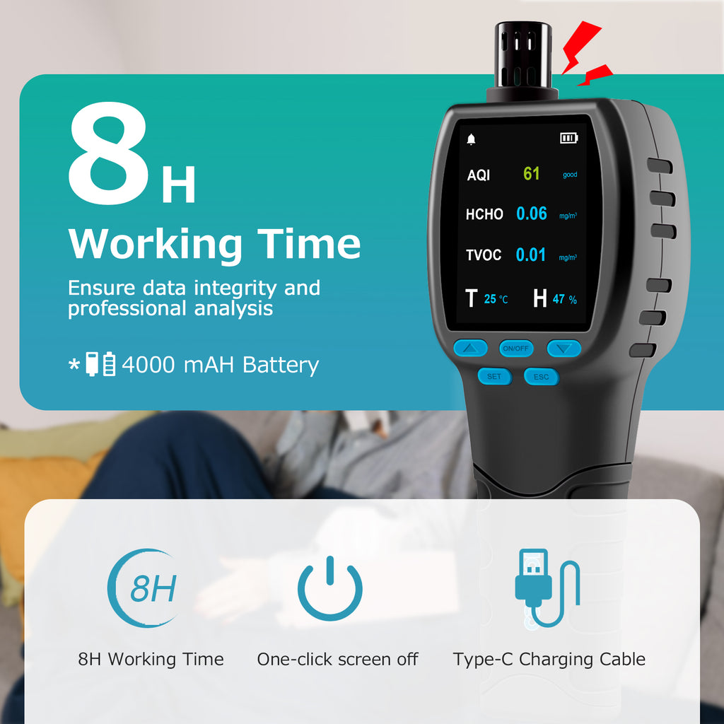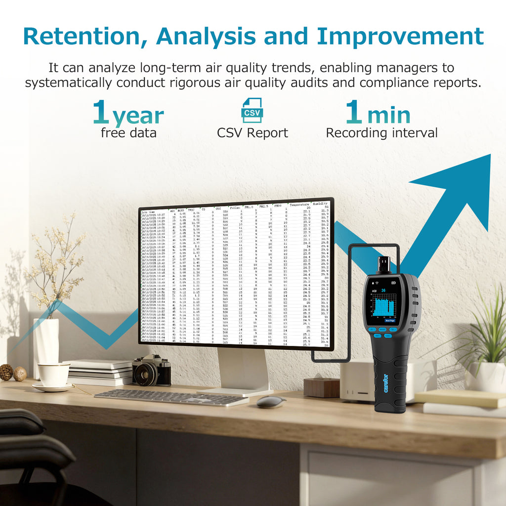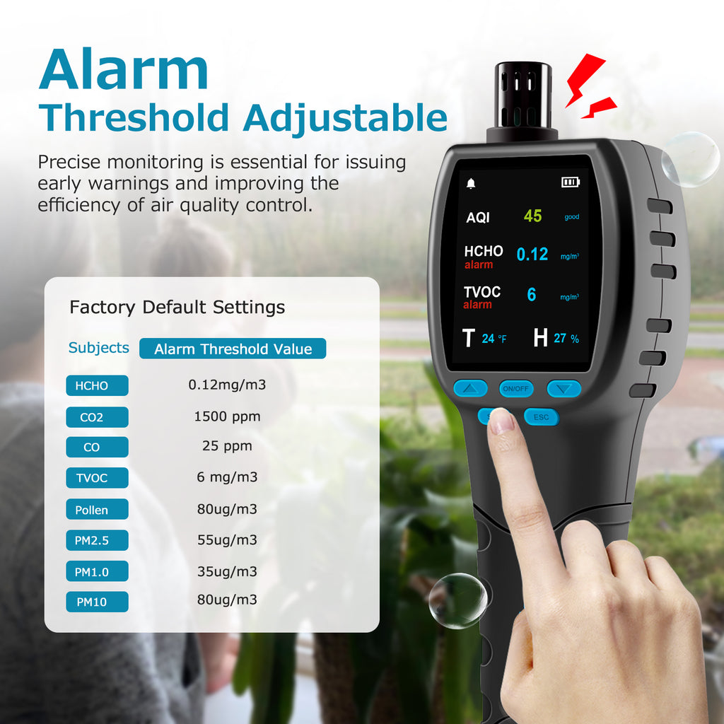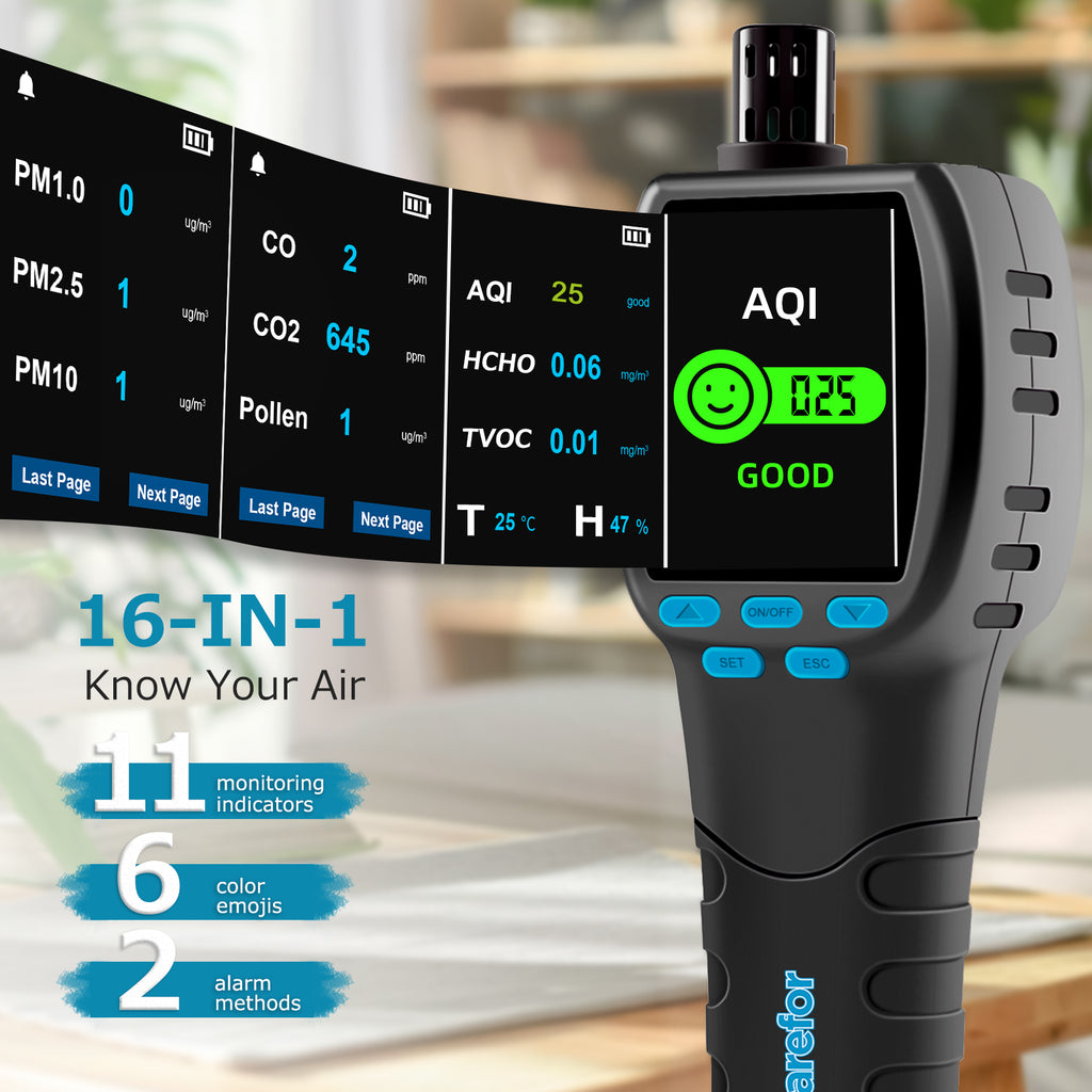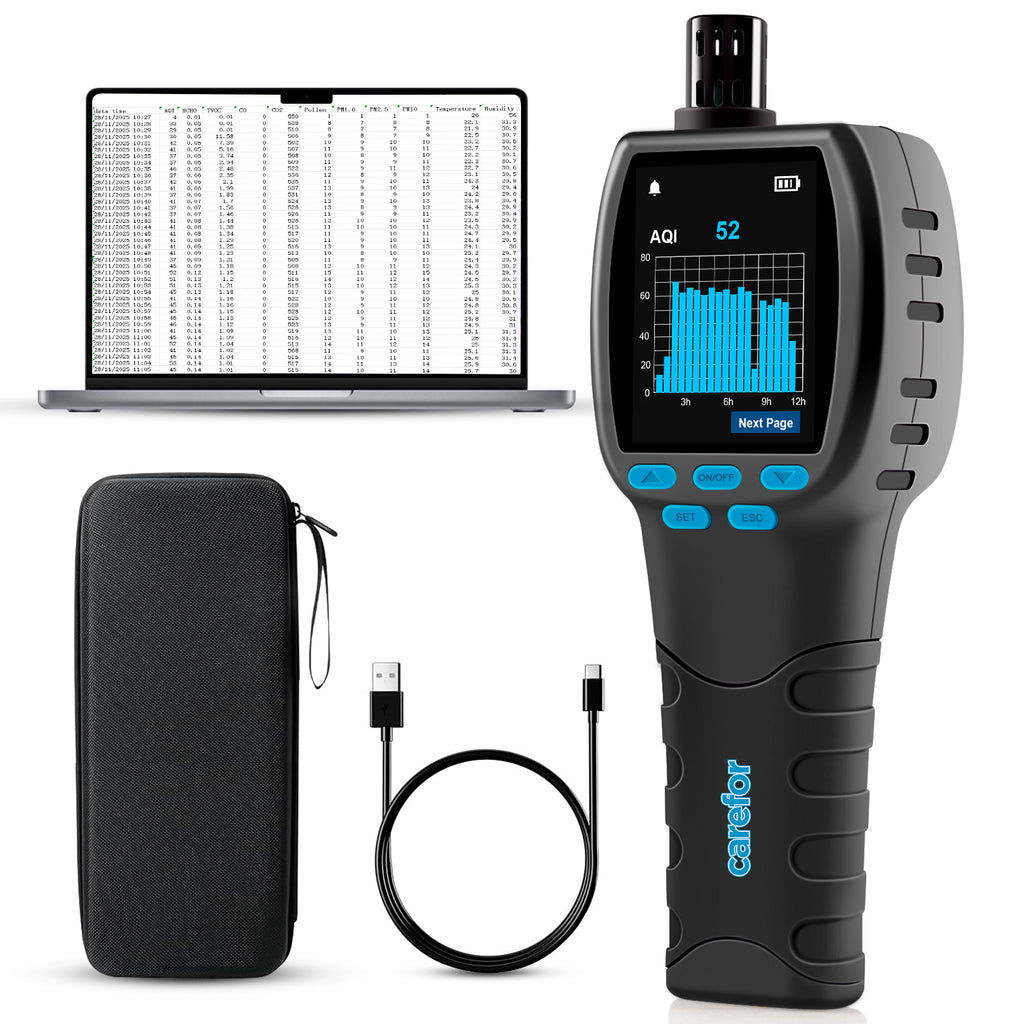 Carefor CF-60 PP Portable Air Quality Monitor, Air Pollution Monitor Detect Pollen CO2, PM2.5, PM1.0, TVOC, CO, HCHO, Temperature, Humidity